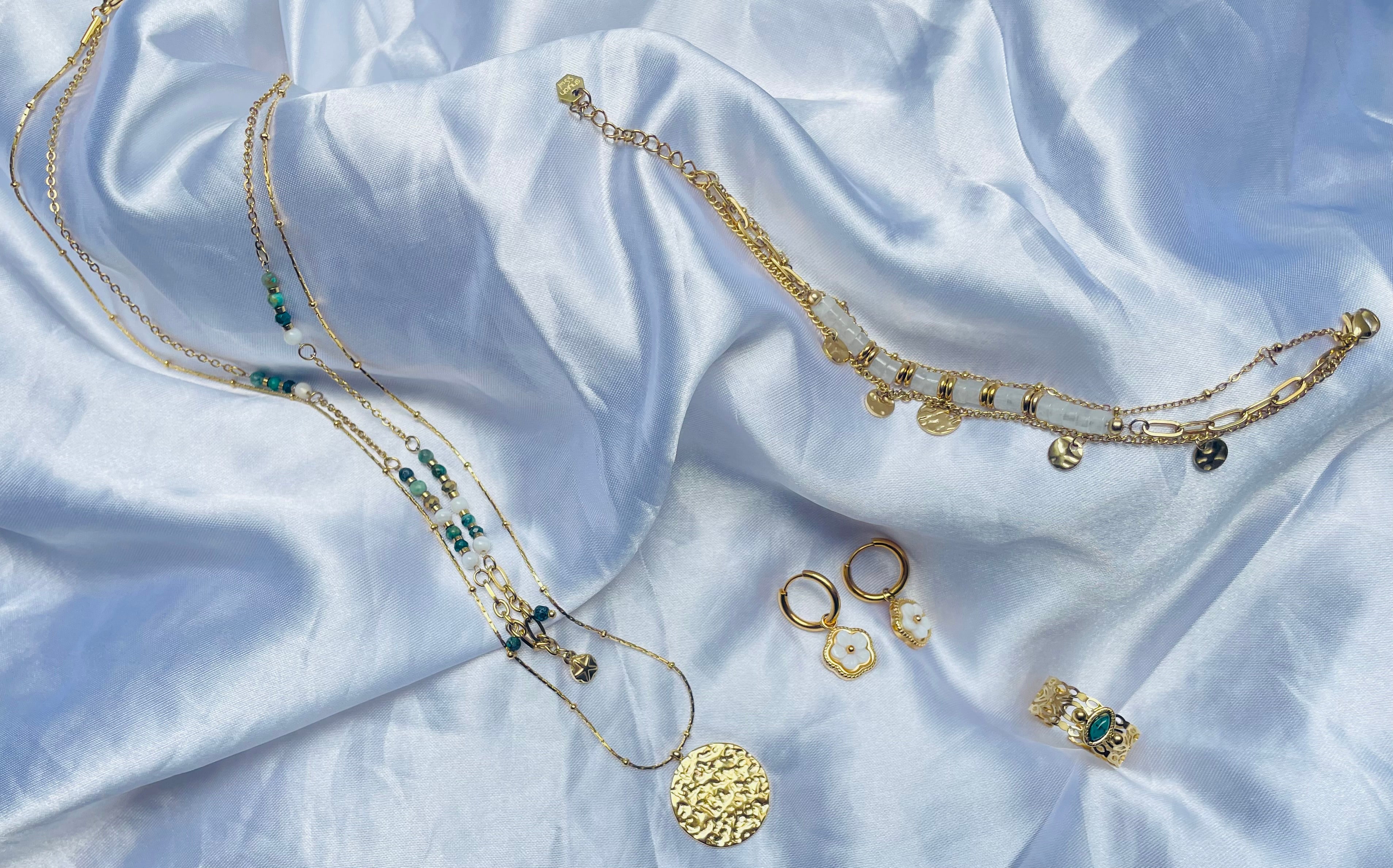 Nos bijoux sont en acier inoxydable, hypoallergéniques et durables. Ils sont ornés de pierres naturelles et résistent à l'eau sans noircir, pour un port quotidien en toute sécurité.